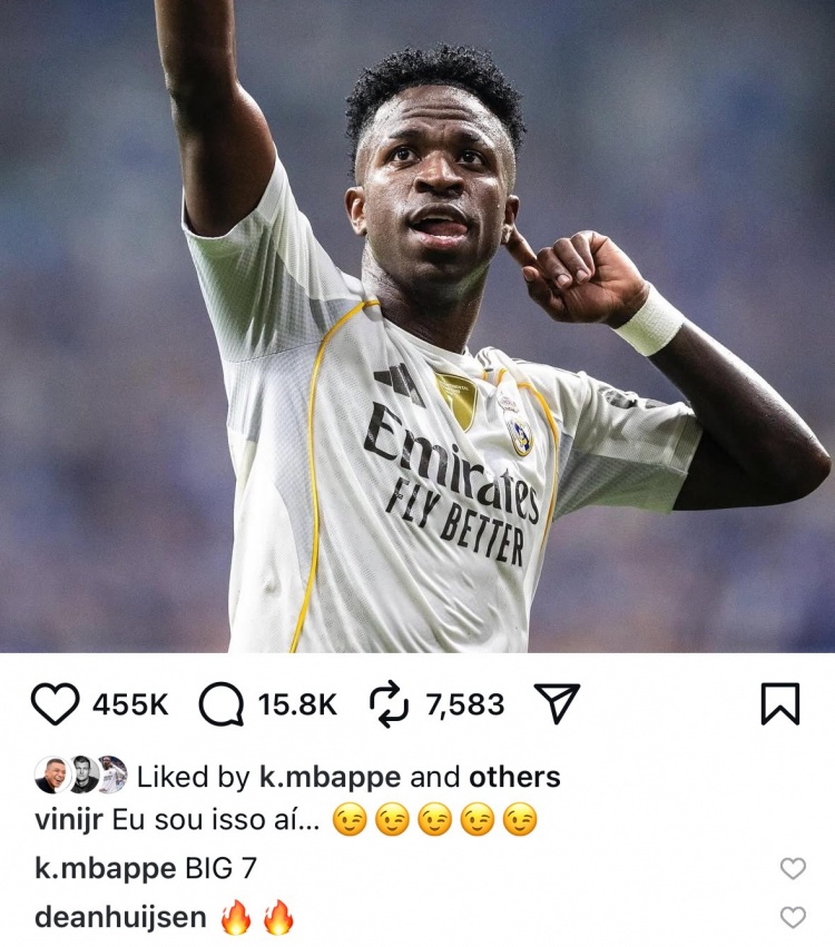 姆巴佩点赞并评论:“BIG 7。”
